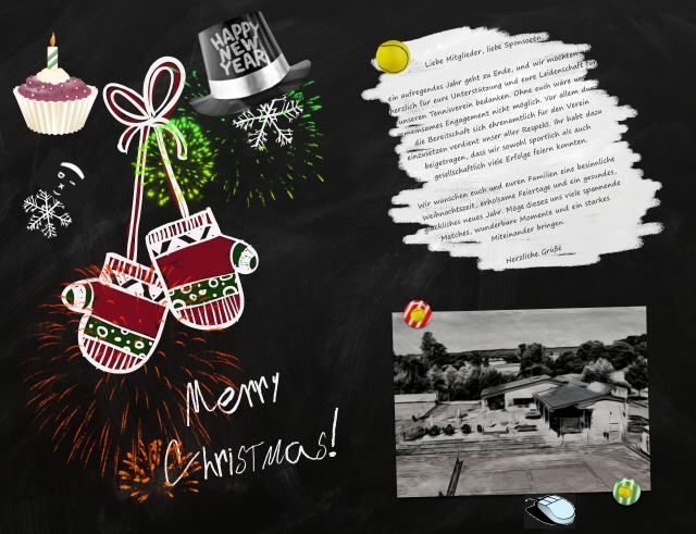 ein aufregendes Jahr geht zu Ende, und wir möchten uns herzlich für eure Unterstützung und eure Leidenschaft für unseren Tennisverein bedanken. Ohne euch wäre unser gemeinsames Engagement nicht möglich. Vor allem durch die Bereitschaft sich ehrenamtlich für den Verein einzusetzen verdient unser aller Respekt. Ihr habt dazu beigetragen, dass wir sowohl sportlich als auch gesellschaftlich viele Erfolge feiern konnten. (click pic)